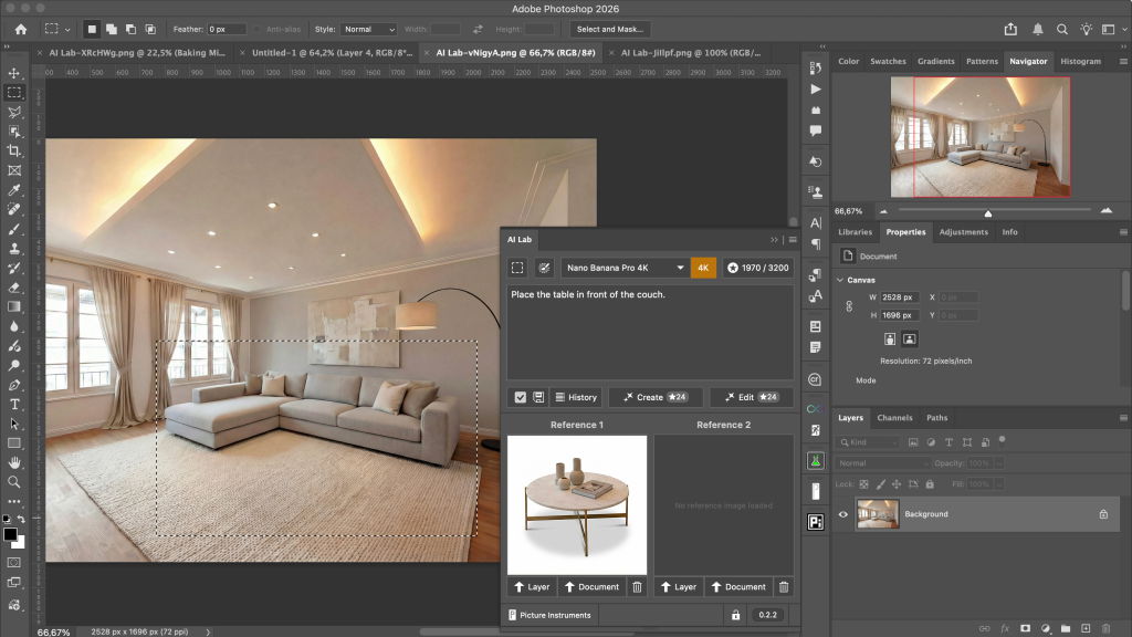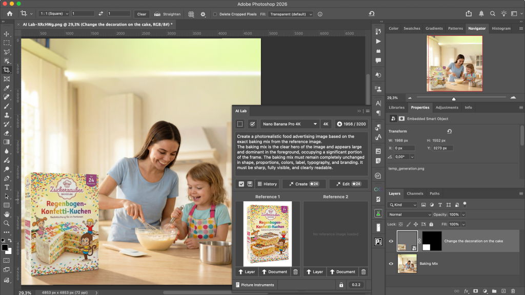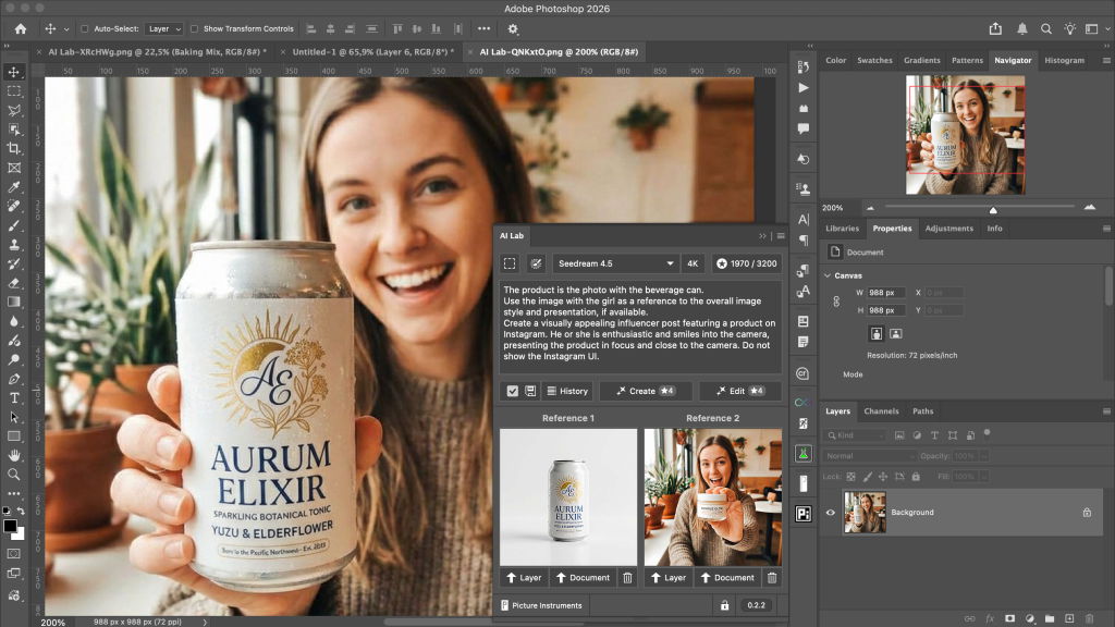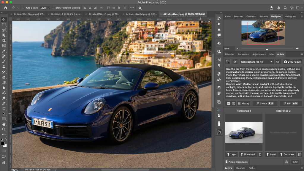 AI Lab UXP ist ein UXP Plugin, welches Photoshop Version 25.2 oder neuer benötigt. Du kannst das Plugin direkt im Creative Cloud Marktplatz installieren und verwalten oder die CCX Datei direkt von dieser Website herunterladen und via Doppelklick installieren.